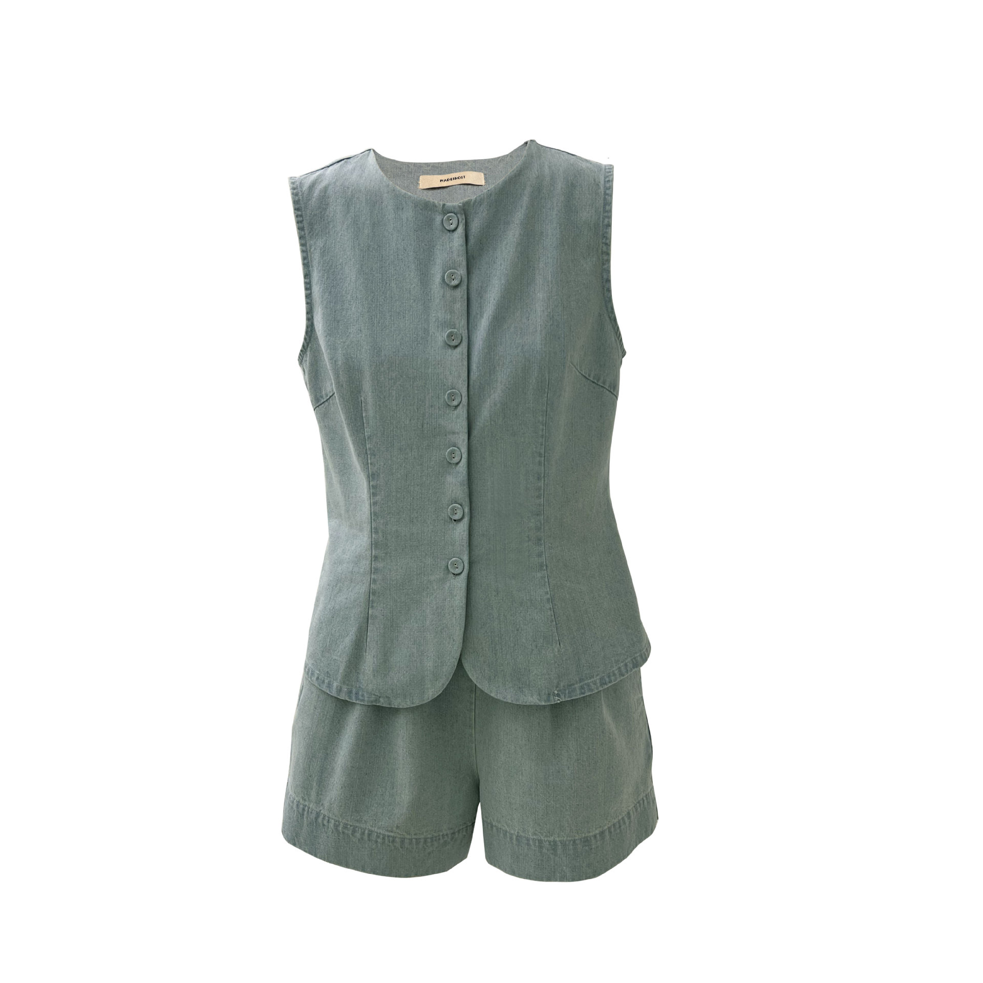 MADEINOST Summer Minimalist Blogger Pure Wash Water Denim Vest Two-Piece suit