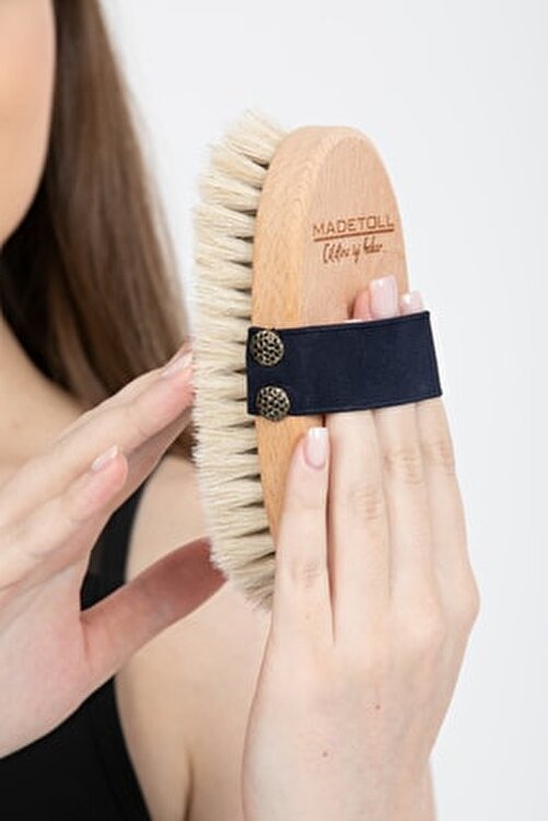 cleanses the skin from dead cells and cleanses the pores. It achieves the effect of exfoliating the skin. It relieves body fatigue and makes the skin look healthier. Accelerates blood circulation and lymphatic drainage. With the effect of massage, it promotes the relaxation of the body. Flaked from dryness, ingrown, hair rotation, strawberry leg, cellulite problem skin gives a much healthier, shiny and smooth appearance with regular use. Note: Cellulite is a circulatory disorder. Regardless of overweight or weak, most often occurs in the hips, legs and abdominal areas. With proper and regular dry scrubbing, abundant water consumption and healthy eating, you can achieve the most effective result in a short time. When should it be done? We can call the dry scrubbing technique ‘waking up the body’. For this reason, dry brushing in the morning allows you to start your day fit and be energetic, as well as many benefits. If you have time, then for the most effective result you should do a dry scrub for 5-10 minutes in the morning and evening every day. It is normal for hairs to fall out in the first few uses, no need to worry. How to use it? For beginners, light and gentle application is the most accurate. Once you get used to dry brushing, you can adjust the stiffness and speed of pressing the brush to your skin. With the Madetoll Natural Horse Hair Brush, gently brush your skin that is completely dry, with long and circular movements leading towards the heart, starting at your ankle without pressing too much. Brushing should always be done from the bottom up, in the direction of the heart. After the dry brushing process is finished, you can take a shower if you wish. After showering or brushing, you can moisturize your whole body with soft textured, fragrant Madetoll products that do not leave a feeling of greasiness. Note: It is very important that the skin is sufficiently moisturized. It is not recommended for use in sensitive areas such as the genital area and nipples. How to clean? According to your needs, you can do brush cleaning 1-2 times a week or after each brushing. The wooden part of Madetoll Natural Horse Hair Brush is made of hornbeam wood. It is very important that you do not leave the wooden part wet. You can wash the brush with water or easily wipe it with a damp cloth. After that, you must necessarily leave it to dry. You can keep your brush, which is sure to dry completely, in a special pouch that we sent to you as a gift. Your brush should be custom for you. In terms of your health, we would like to remind you that you should not use your brush in common with anyone.