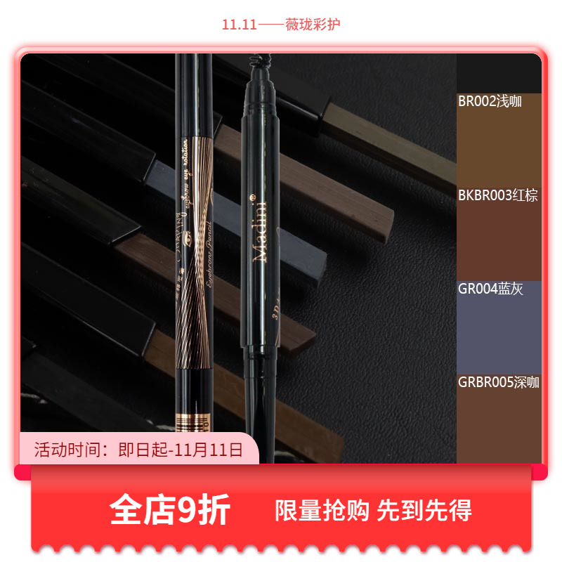| nameOriginal | Madini 3D big eyes rotating eyebrow pencil easy to color with eyebrow brush automatic eyebrow pencil brown black dark coffee authentic |
