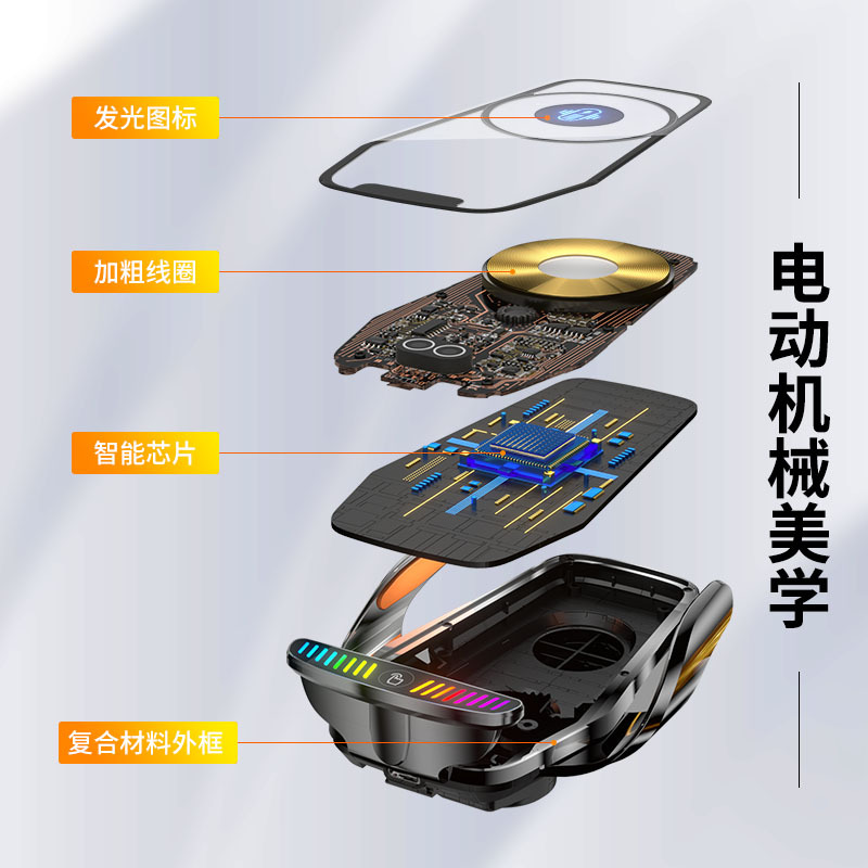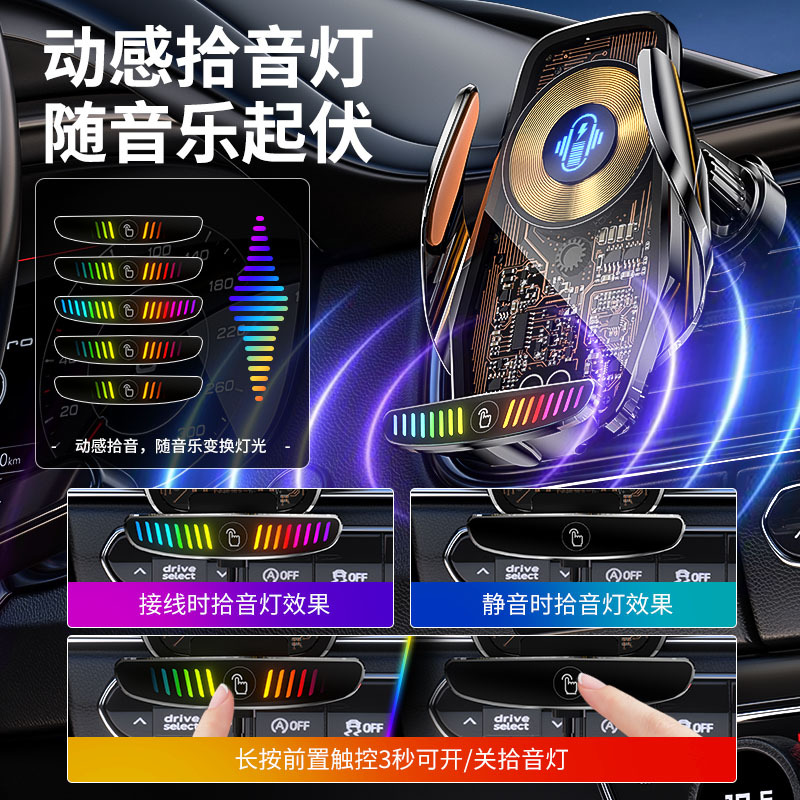 Magic clip M9S pickup light 66W fast charging transparent line design car wireless charging mobile phone holder car supplies