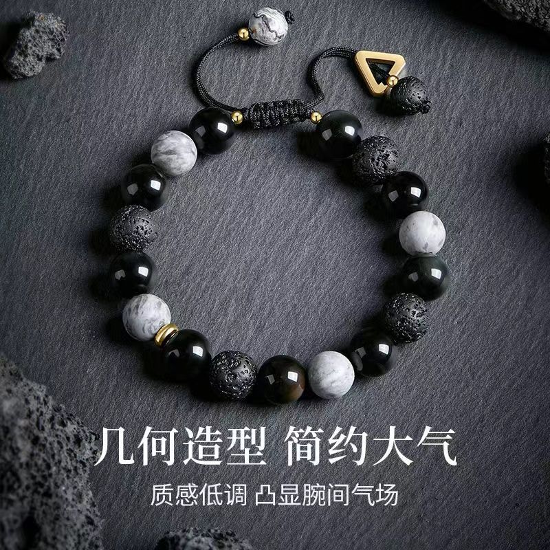 | nameOriginal | Magic Night Planet Obsidian Beaded Bracelet for Boys High Volcanic Stone Beads Retro Bracelet Personalized Gift Boyfriend |
