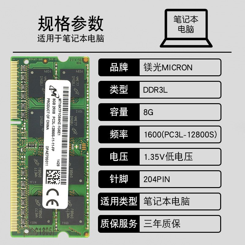 | nameOriginal | Magnesium DDR3L 8G 1600MHZ PC3L-12800 laptop memory bar MT16KTF1G64HZ |