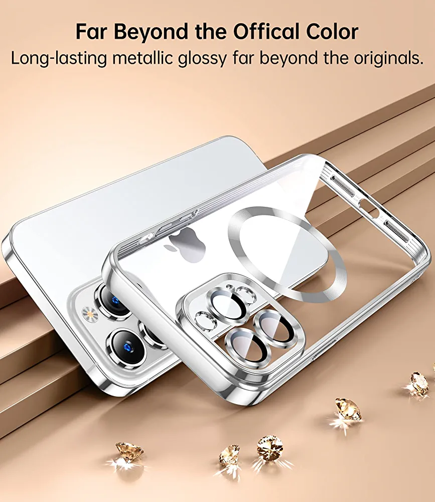 | nameOriginal | JUESHITUO Magnetic Matallic Glossy Clear for iPhone 12 Pro Case with Full Camera Cover Protection [No.1 Strong N52 Magnets] [Military Grade Drop Protection] for Women Girls Phone Case (6.1")-Silver |