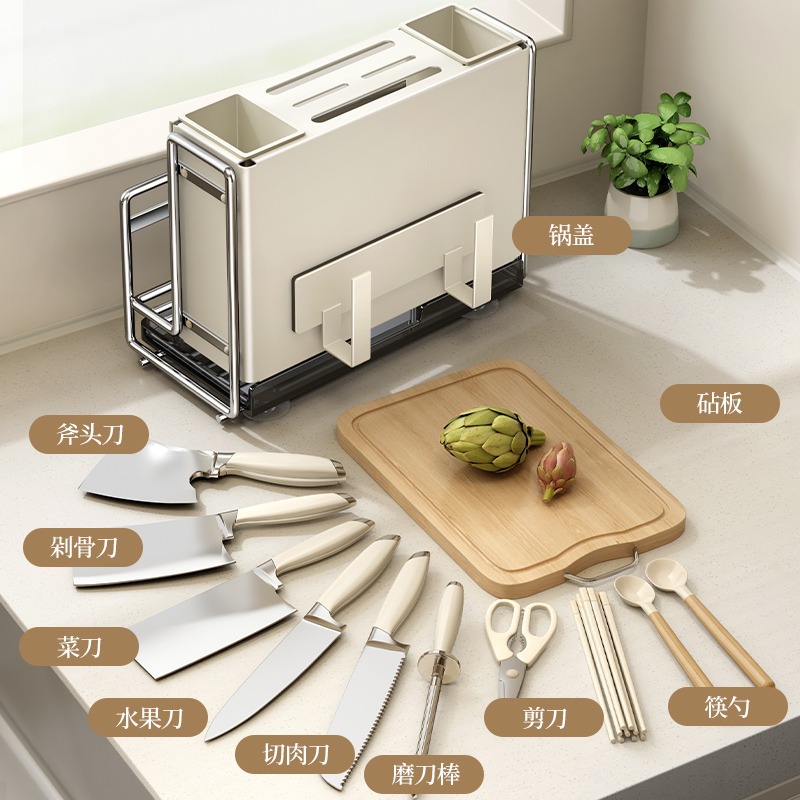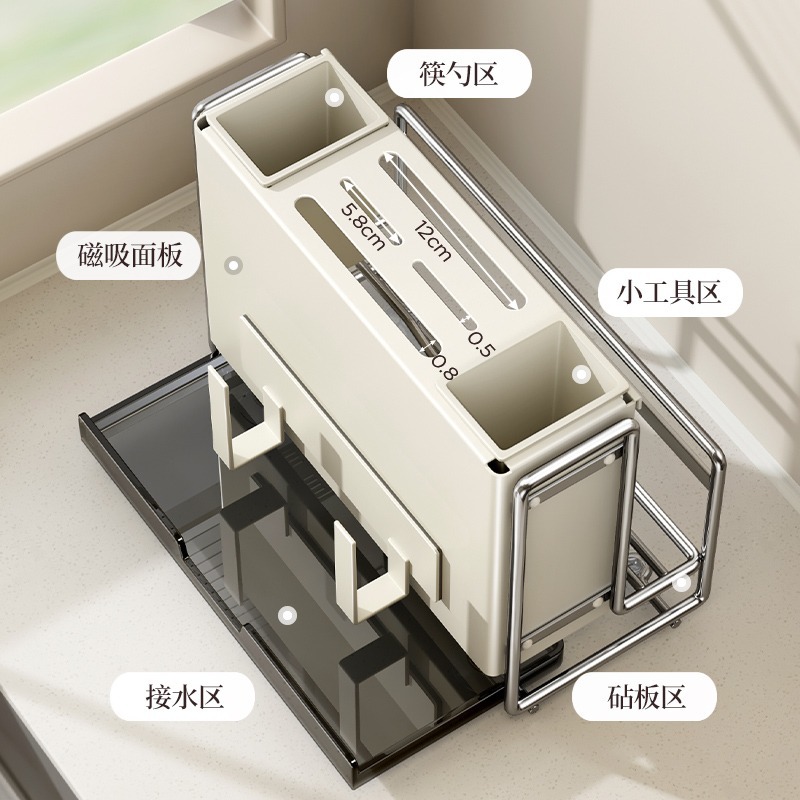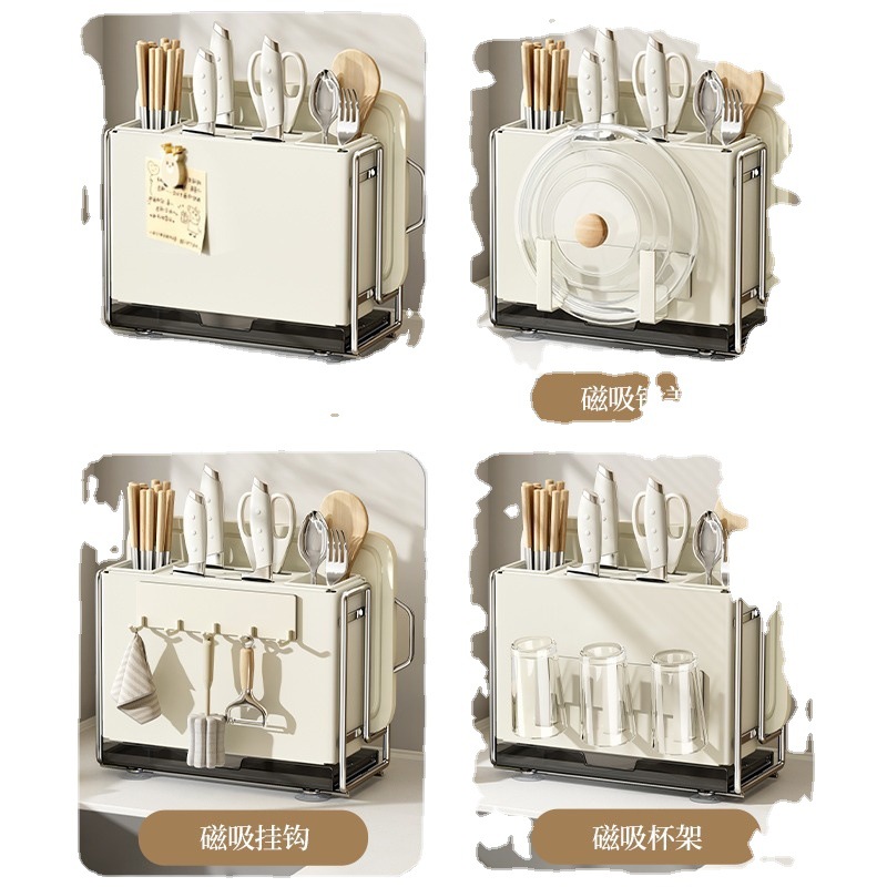 Magnetic suction knife holder chopsticks chopping board integrated multi-functional knife holder stainless steel kitchen knife holder wall-mounted kitchen knife holder