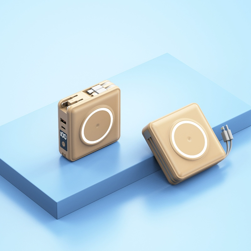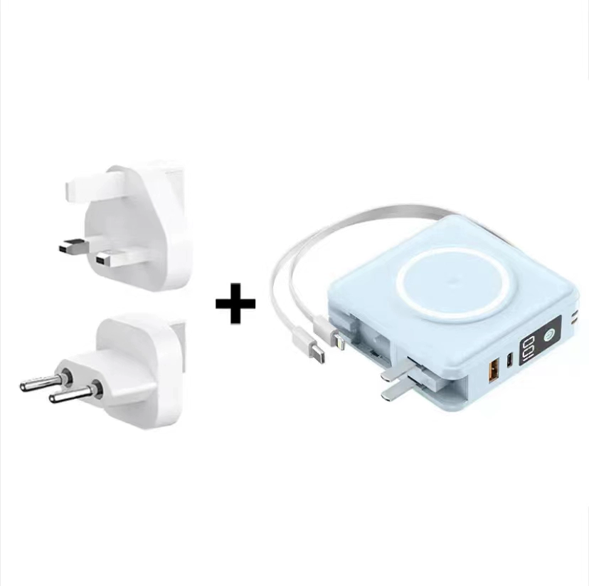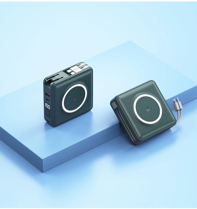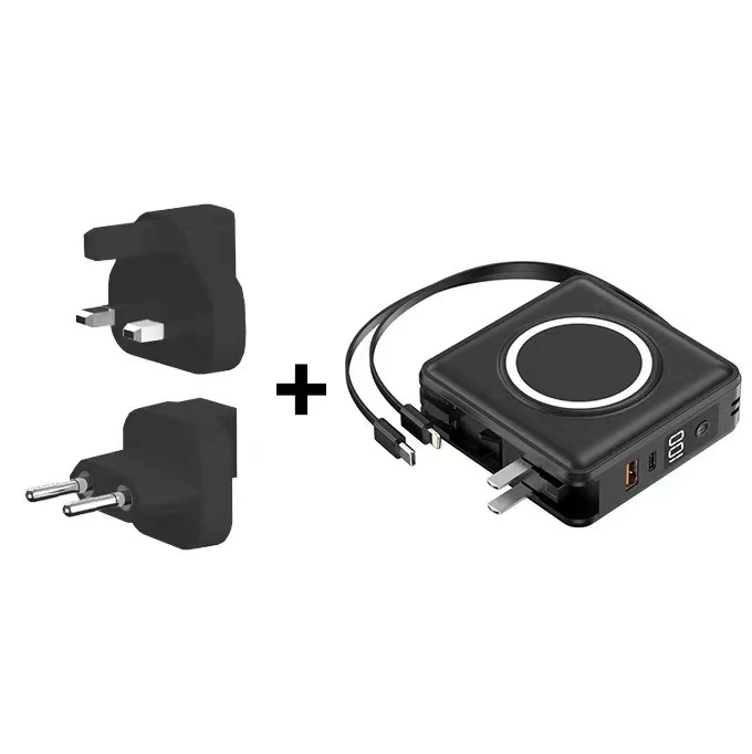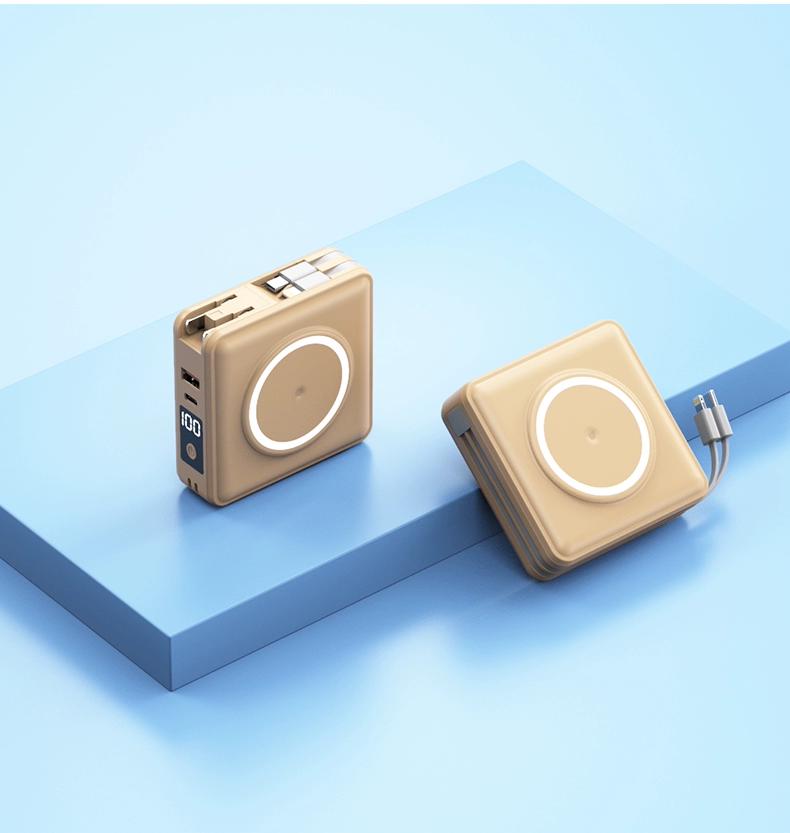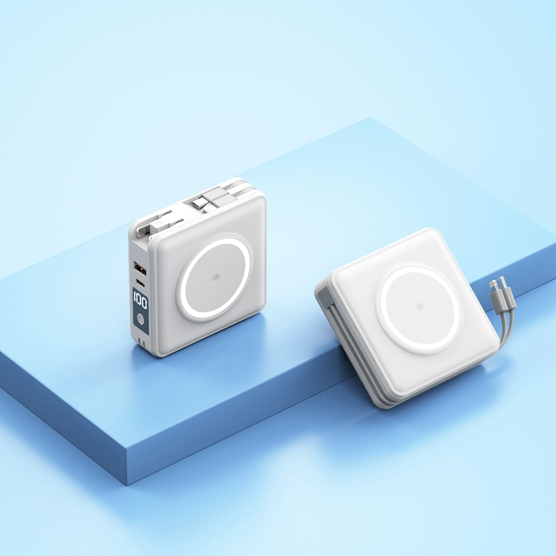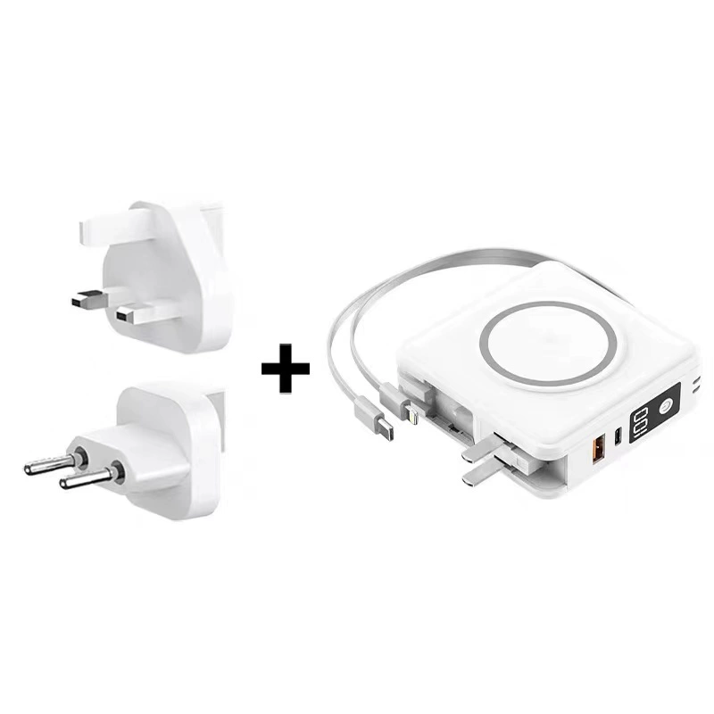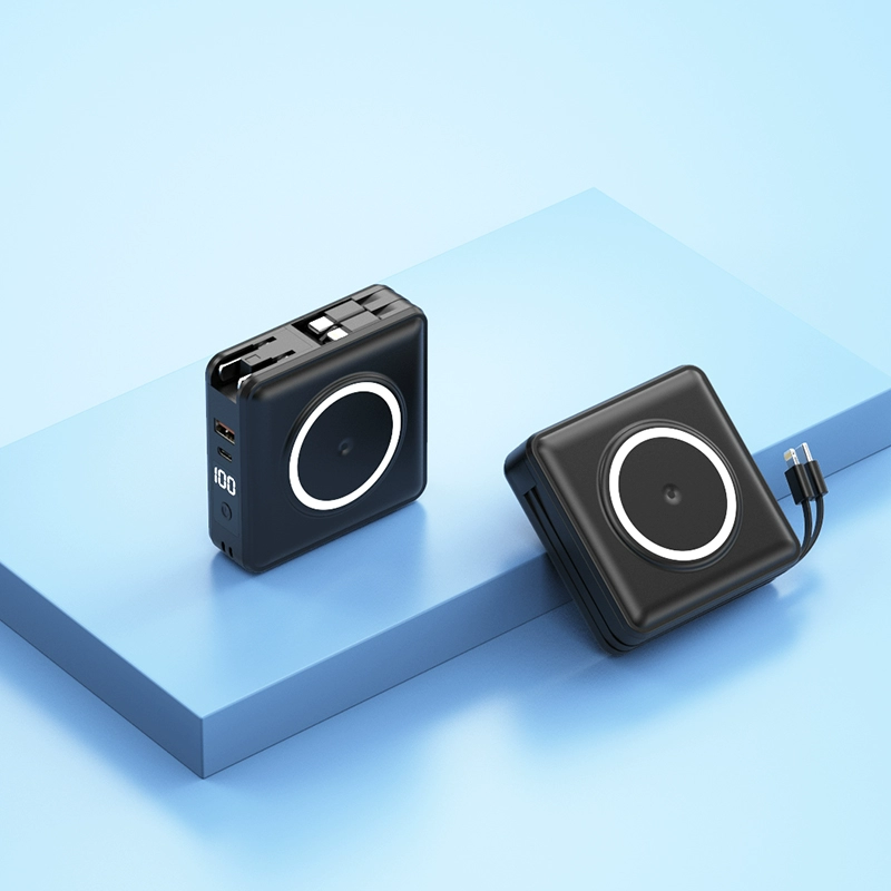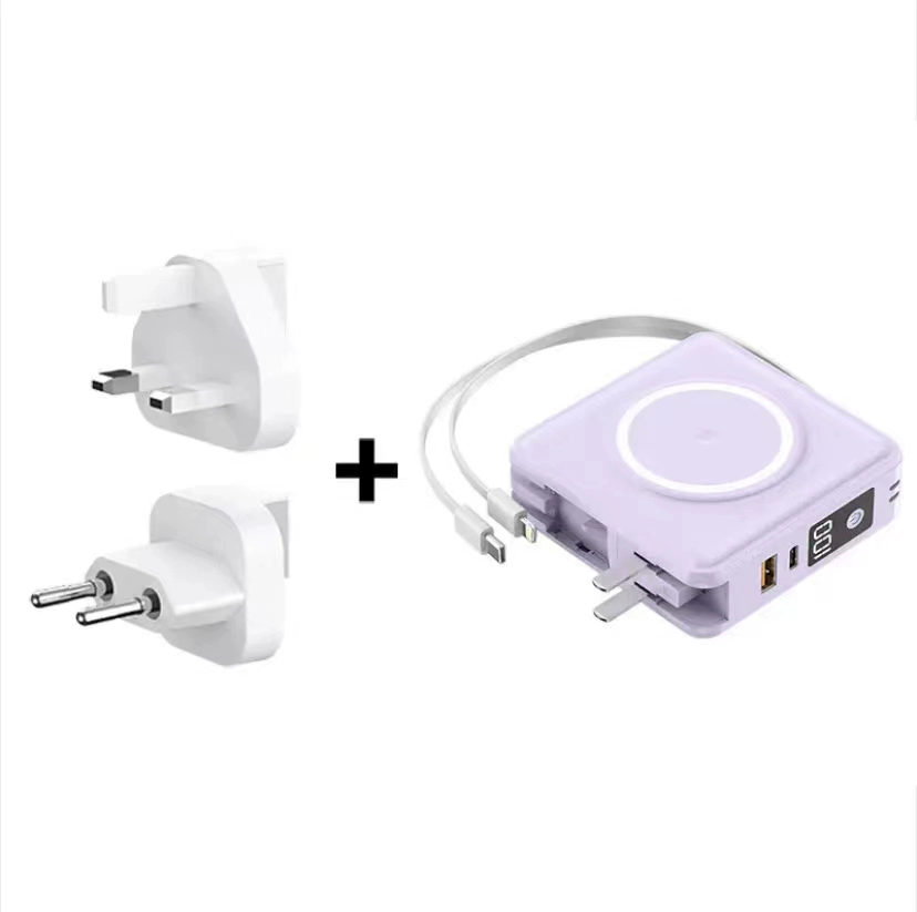 | nameOriginal | Magnetic wireless power bank with built-in cord, three-in-one plug, mobile power supply, portable, suitable for Apple and Huawei fast charging PD |