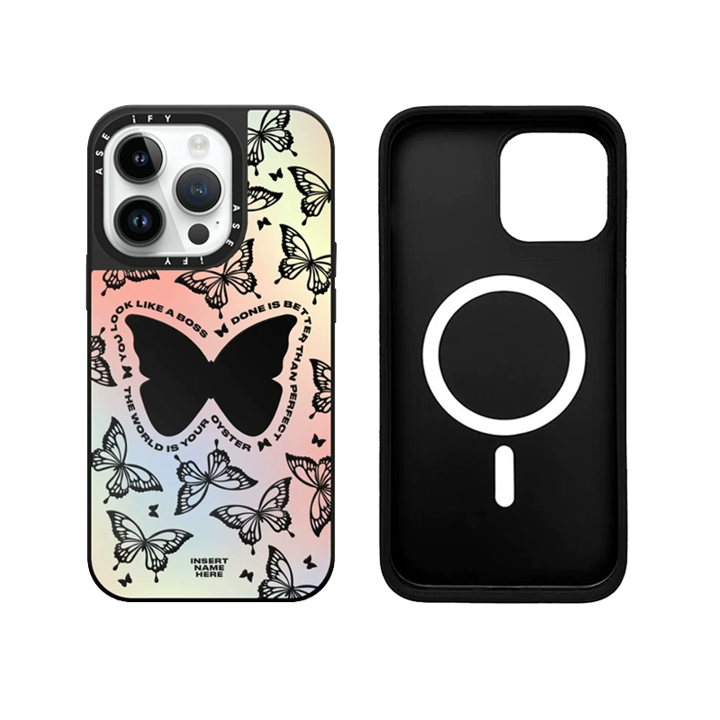 | nameOriginal | Magsafe magnetic CASE gradient colorful butterfly 15Pro mobile phone case suitable for Apple 14 mirror black frame 13Pro niche 12Promax anti-fall sweet girl ins all-inclusive protective cover |