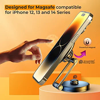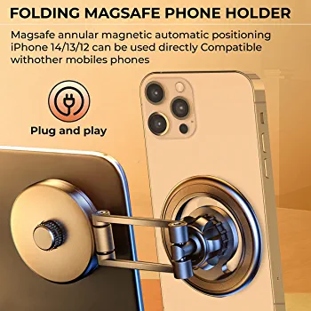 Introducing the ultimate MagSafe holder that offers unparalleled convenience and versatility. With a 360-degree rotatable base and ball joint adjustable head, this holder can be positioned at any angle for optimal viewing. When not in use, it can be easily folded and adjusted to the desired height without obstructing your view.