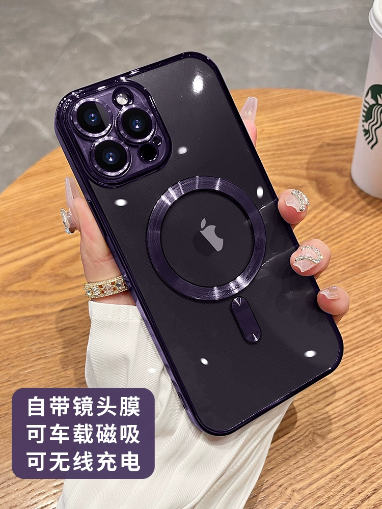 | nameOriginal | Magsafe magnetic suction is suitable for Apple 14promax mobile phone case iPhone15pro set 15 new silicone 14pro comes with lens film 12 women's ultra-thin 11 high-end sense 13 transparent plus |