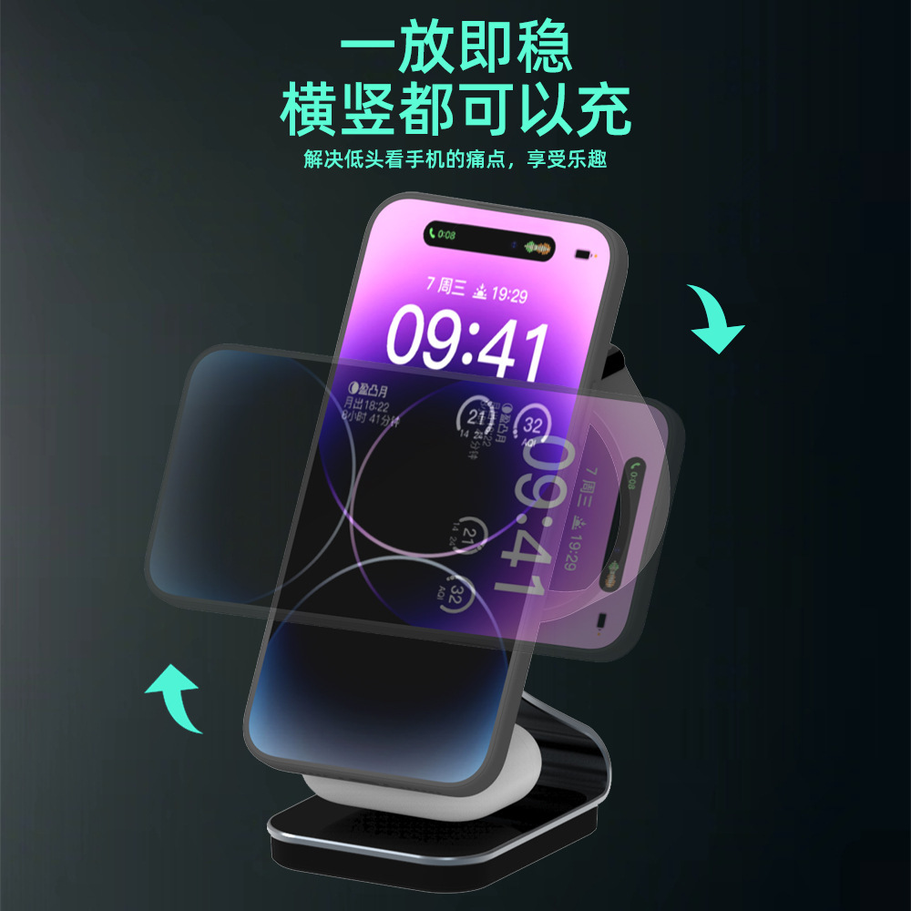 Magsafe three-in-one wireless charger fast charging magnetic bracket for Apple mobile phone watch headset