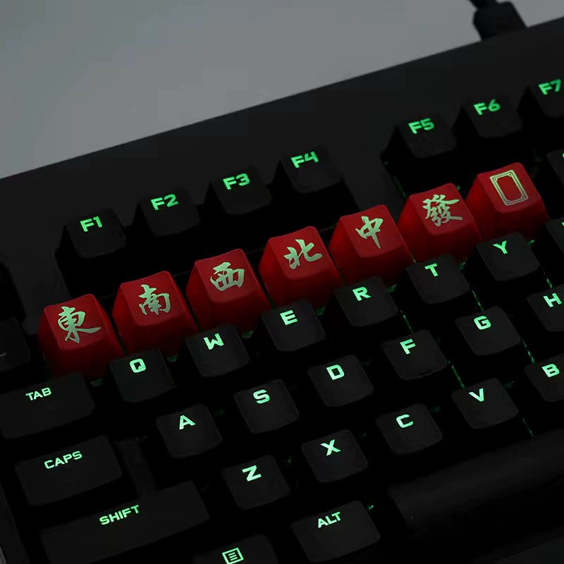 Mahjong translucent personalized mechanical keyboard keycap key supplementary replacement key OEM black and red R4 replacement