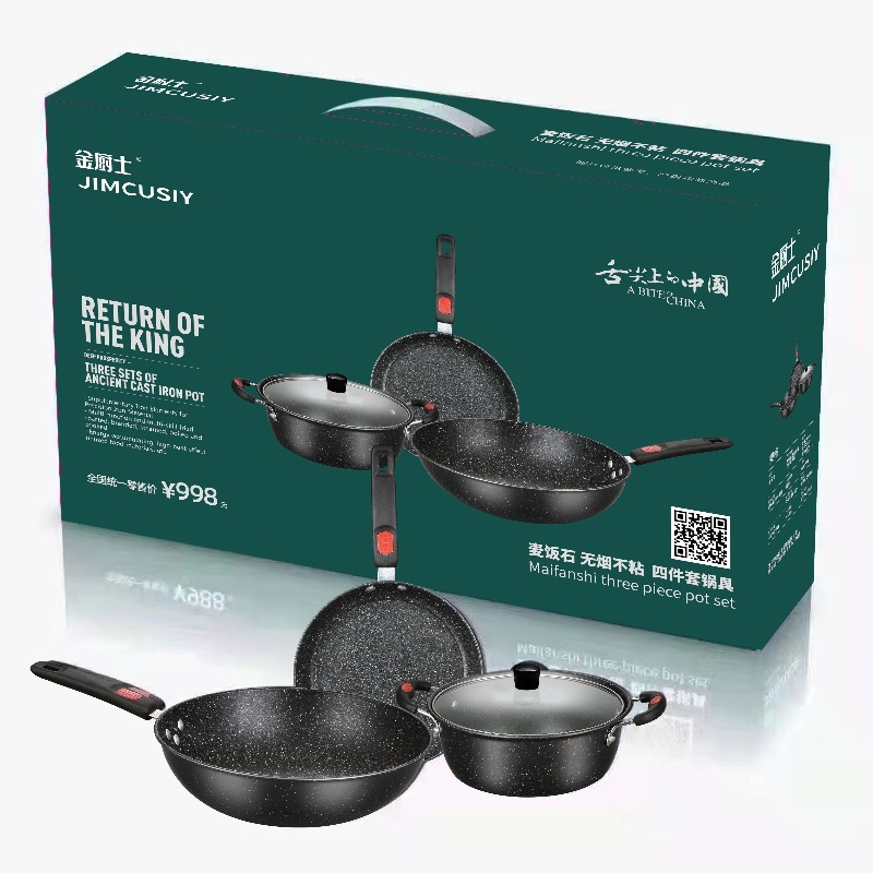 Maifanite Three-piece Non-stick Pan Wok Home Cooking Pan Smokeless Wok Stove Universal Soup Pot Wholesale