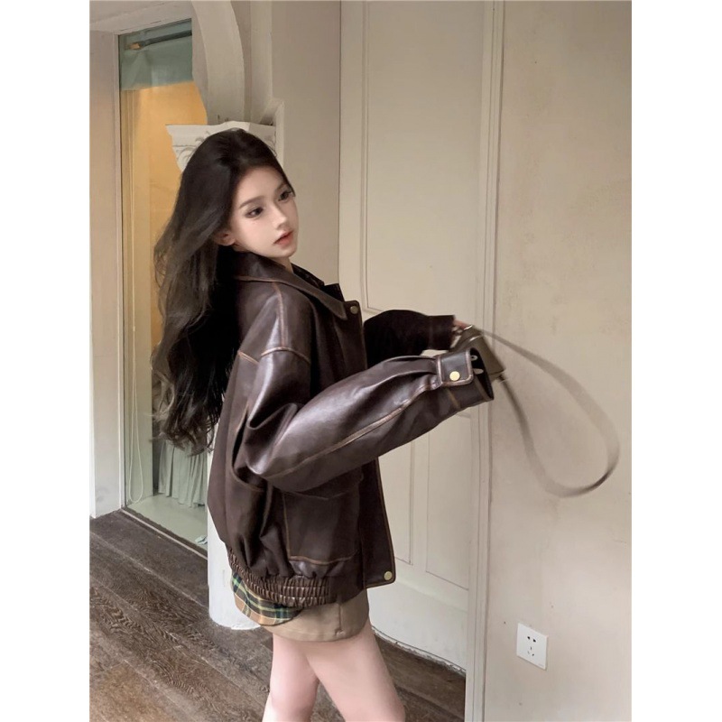 | nameOriginal | Maillard Chanel style western style casual lapel leather jacket coat autumn and winter 2023 new Hong Kong style loose leather coat for women |