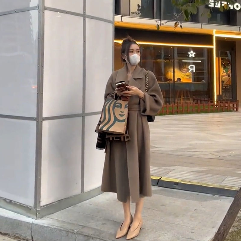 Maillard Double-sided Fleece Wool Coat Women's Autumn and Winter Mid-length Korean-style Loose Lazy Woolen Coat Trendy for Petite