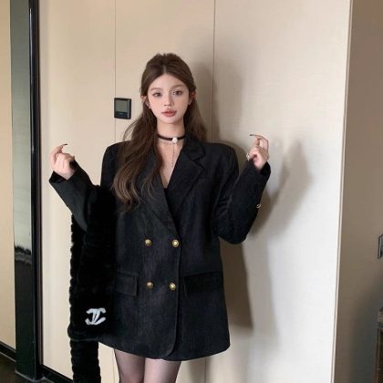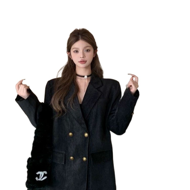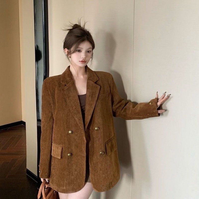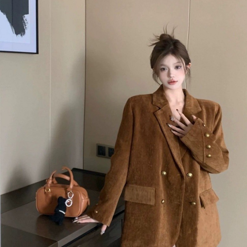 Maillard Korean style high-end brown suit jacket women’s winter loose mid-length temperament quilted thickened suit