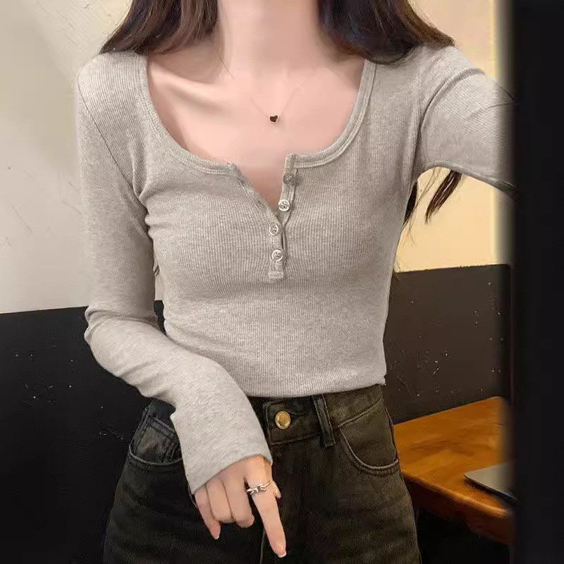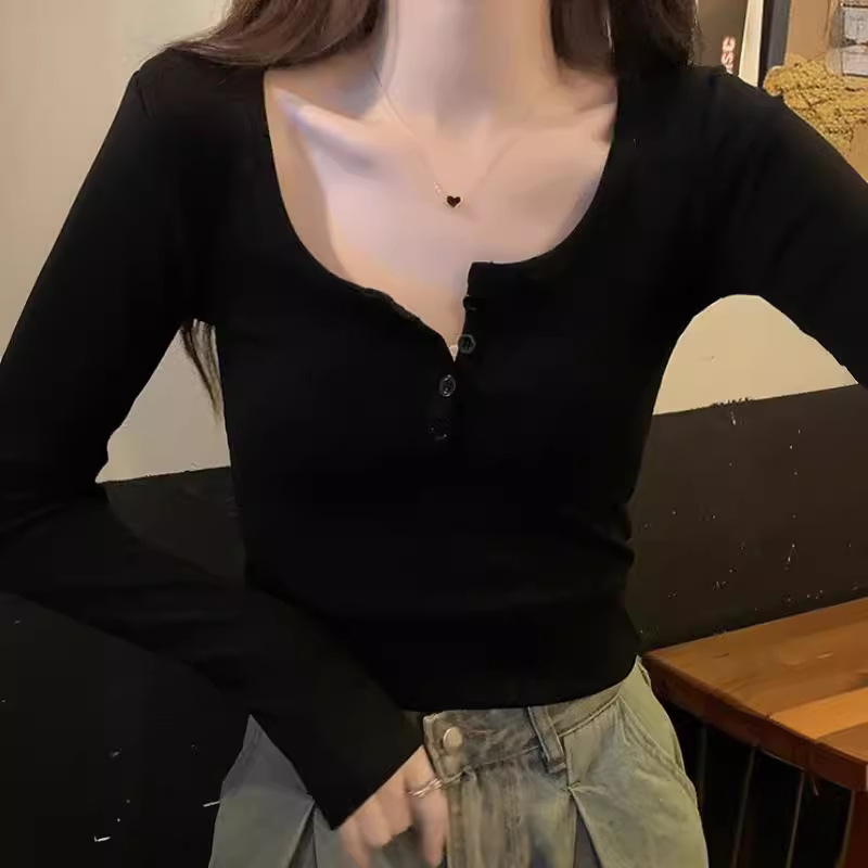 nameOriginal | Maillard Wear Long-Sleeved Slim-Fit Skinny Base Shirt Women's Spring Season Half-Open Collar Button Spice Girl T-Shirt Top |