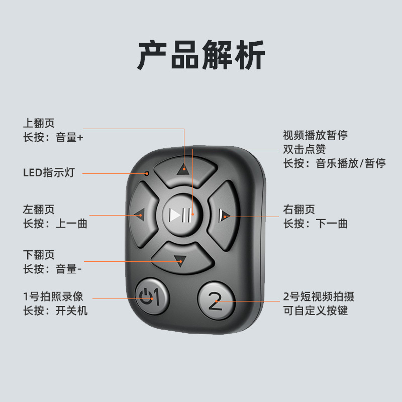 | nameOriginal | Mainstream APP TikTok Bluetooth Smart Remote control ring brush video chasing drama like novel page turning Bluetooth remote control |