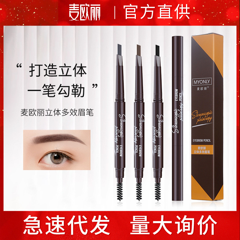 Maioli Three-Dimensional Multi-Effect eyebrow pencil double-headed triangle one-word beginner eyebrow pencil not easy to smudges makeup foreign trade Wholesale