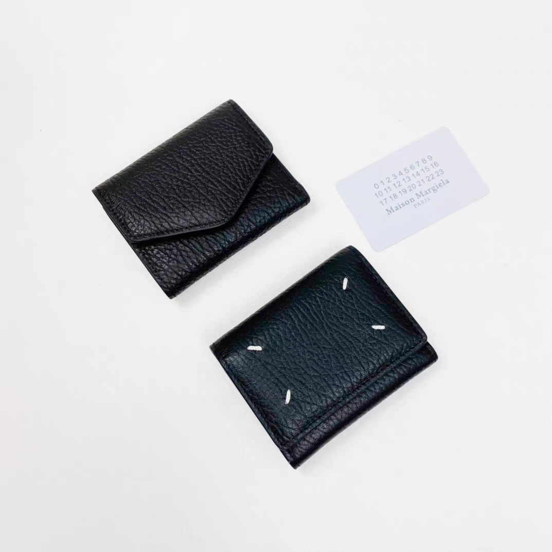 Maison Margiela men’s and women’s black cowhide flip triangle tri-fold short wallet card bag first layer cowhide