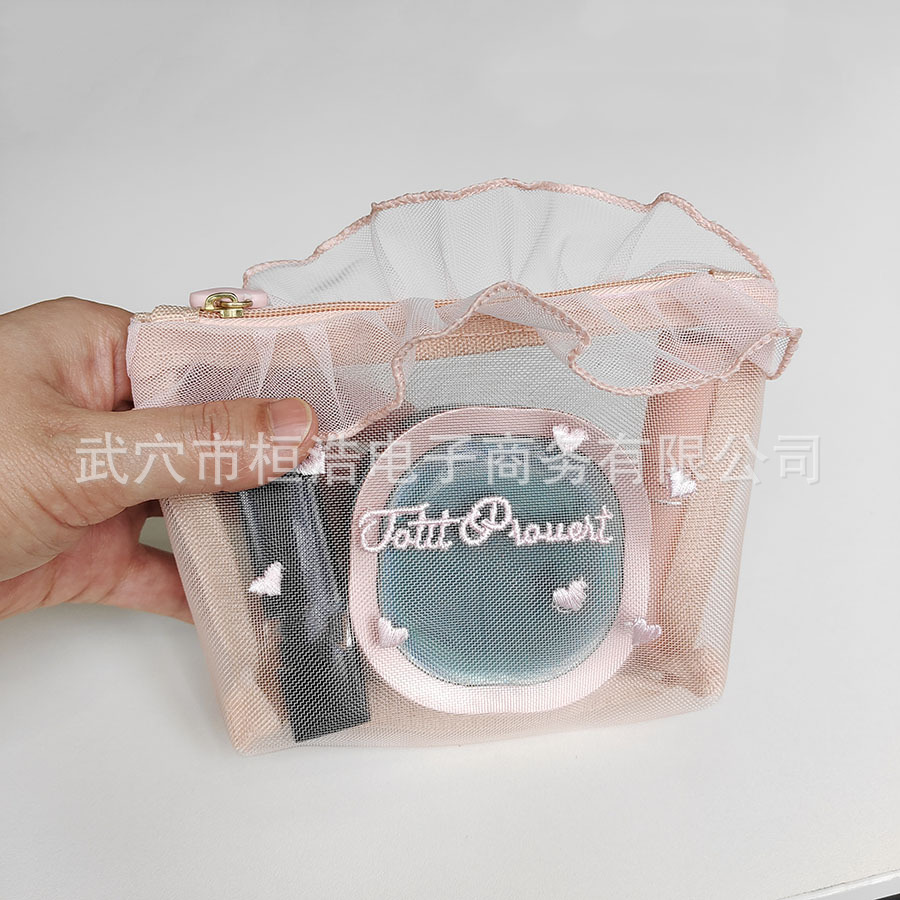 | nameOriginal | Makeup Bag Mesh Storage Bag Girl's Personality Niche Transparent Handbag Fresh Sweet Clutch Bag |