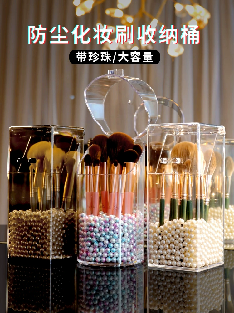 Makeup brush storage box dust-proof eyebrow pencil eyeliner brush bucket desktop pen holder brush eye shadow brush cosmetic storage box