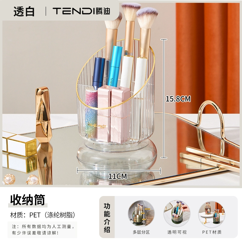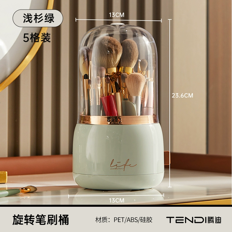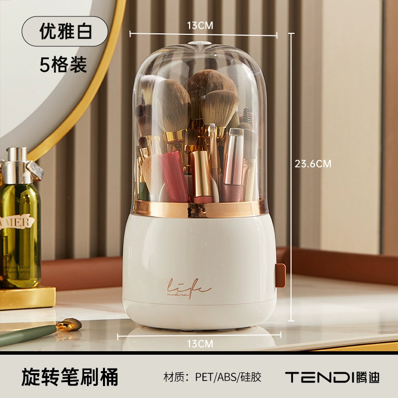 Makeup brush storage box dust-proof with cover rotating dressing table eye shadow brush eyebrow pencil lipstick storage box desktop pen holder