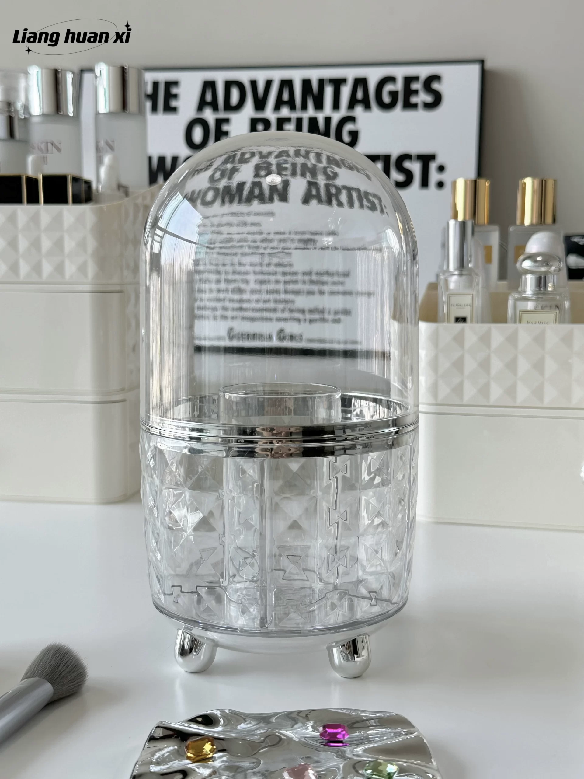| nameOriginal | Makeup brush storage box dustproof with lid eyebrow pencil brush lipstick storage box rotating cosmetics and skin care product storage rack |