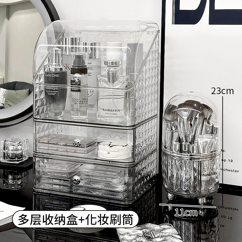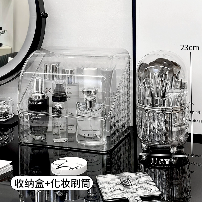 | nameOriginal | Makeup brush storage tube transparent dustproof dressing table makeup pen eyebrow pencil storage rack rotating cosmetics storage box basket |