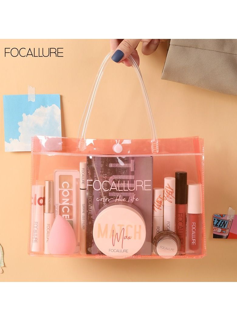 Makeup Kit including Setting Spray, Matte Foundation, Hydrating Primer, Concealer with Brush, Sponge, and Tote Bag.