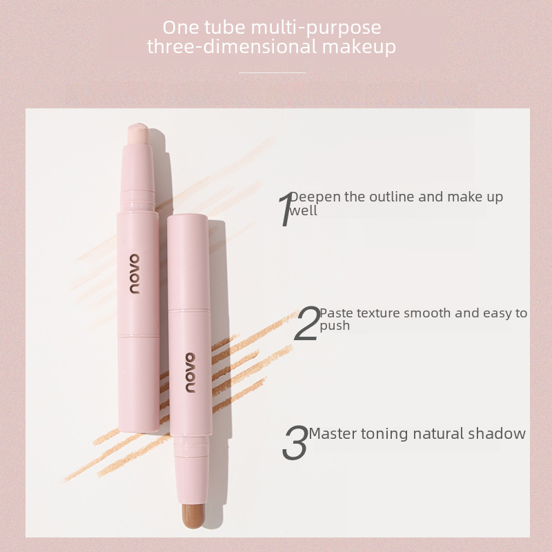 | nameOriginal | Makeup NOVO double-headed repair stick high-gloss stick three-dimensional modified nose shadow shadow side shadow face brightening and brightening stick |