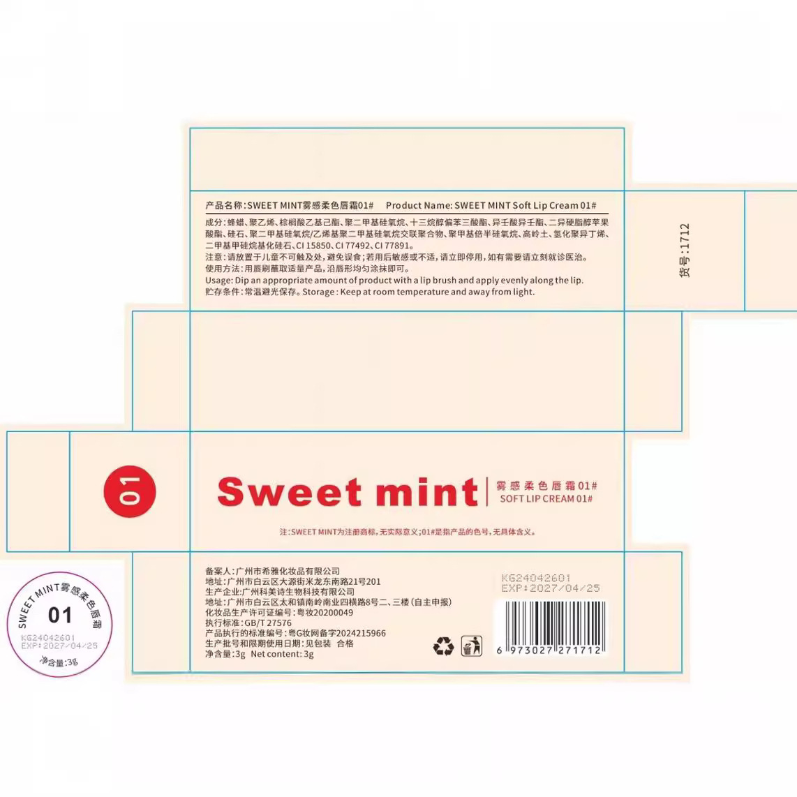 | nameOriginal | Makeup sweetmint Mist Soft Lipstick Lip Cream Matte White Fog Velvet Lip Mud Not Easy to Stick to Cup |