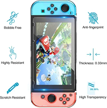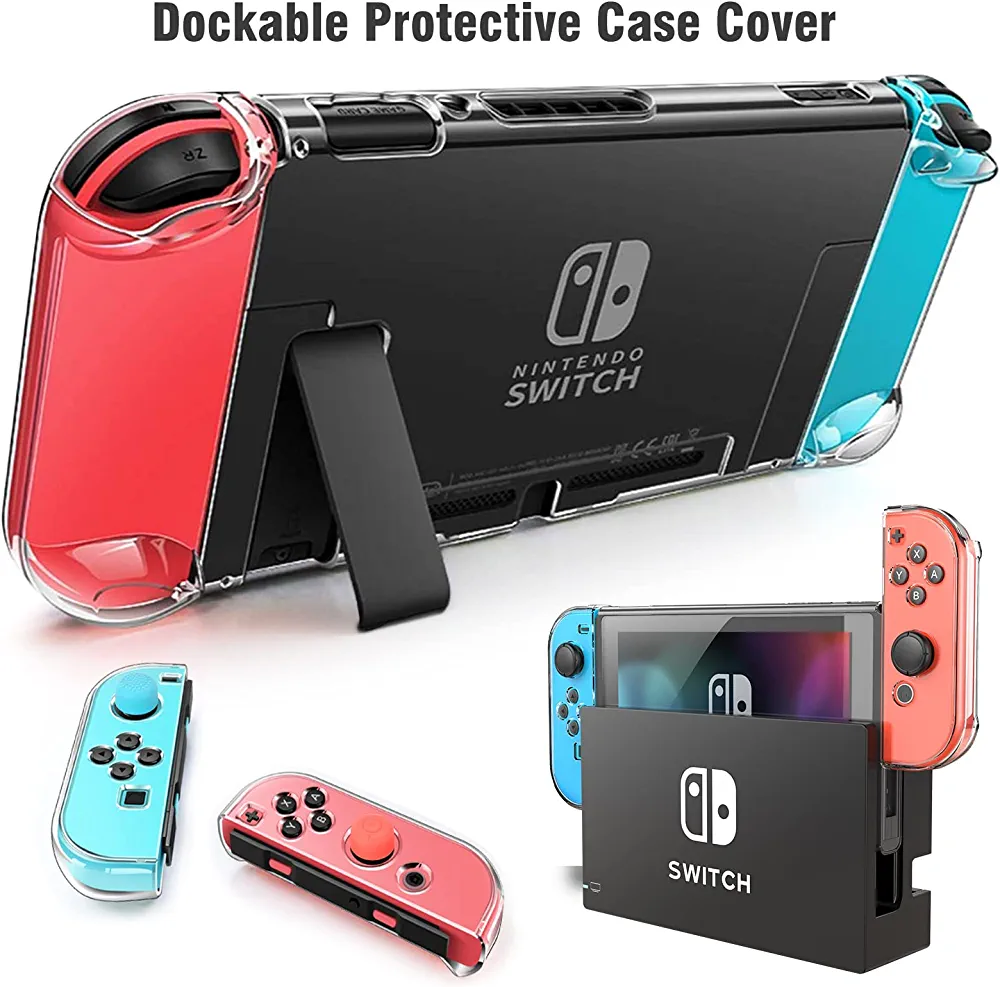 This bundle includes a carrying case, transparent cover, glass film, and Joy-Con thumb cap for your Nintendo Switch. It offers full protection and shockproof capabilities, making it perfect for travel or gaming with friends.
