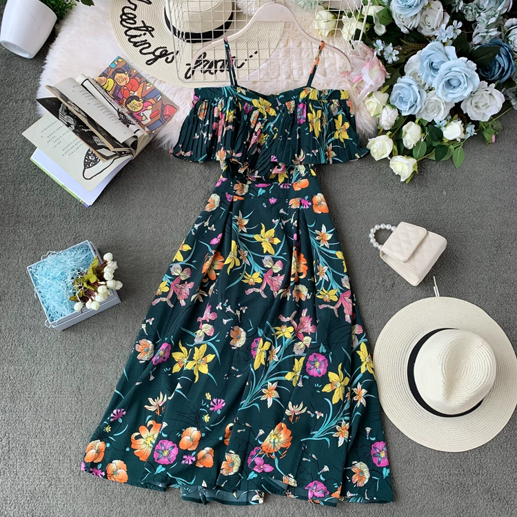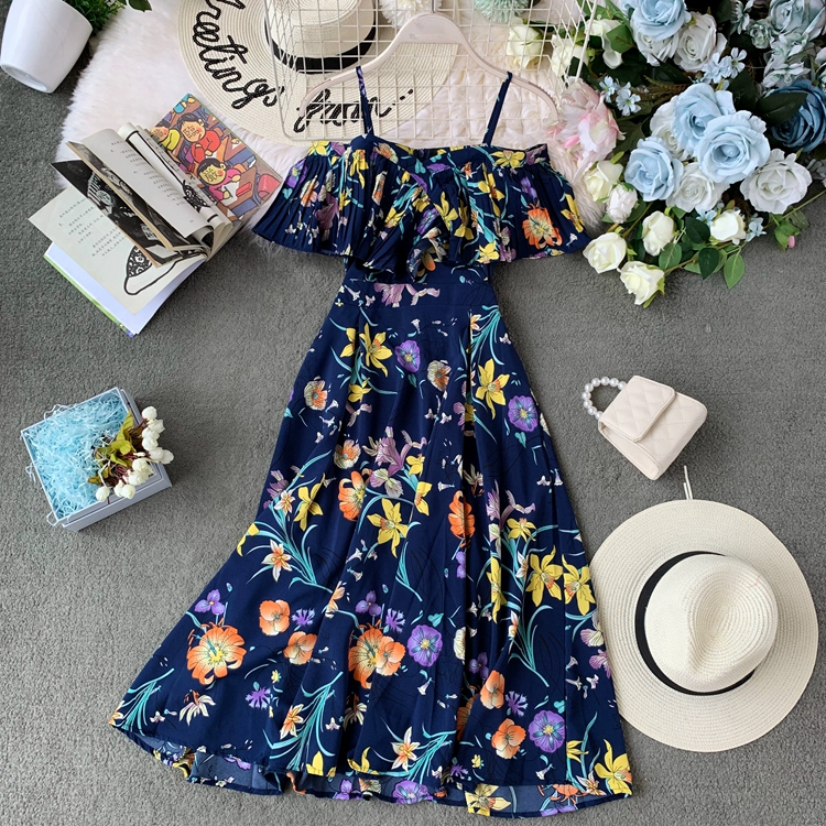 Maldives beach dress women’s new Bali beach vacation long dress one-line collar off-shoulder suspender dress