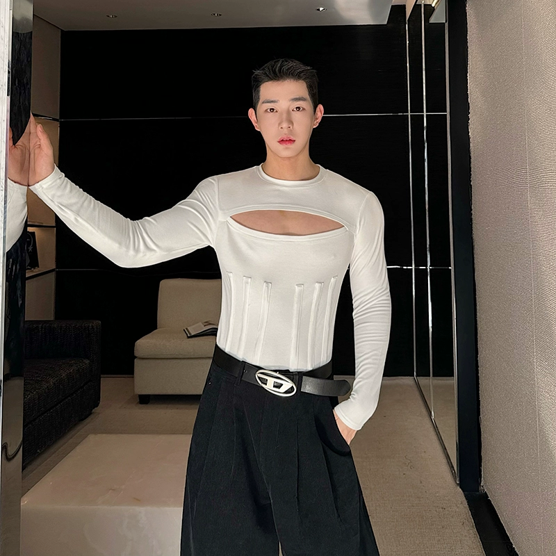 | nameOriginal | Male model catwalk style fashionable herringbone waist long-sleeved T-shirt |