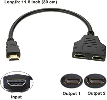 | nameOriginal | HDMI Splitter Cable Male 1080P to Dual HDMI Female 1 to 2 Way HDMI Splitter Adapter Cable for HDTV HD, LED, LCD, TV, Support Two TVs at The Same Time |