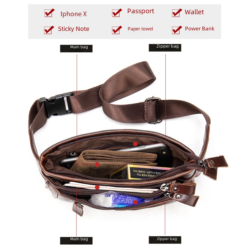 | nameOriginal | Malute Waist Bag Multifunctional Men's Genuine Leather Messenger Bag Men's European and American First Layer Cowhide Chest Bag Waist Bag Wholesale |