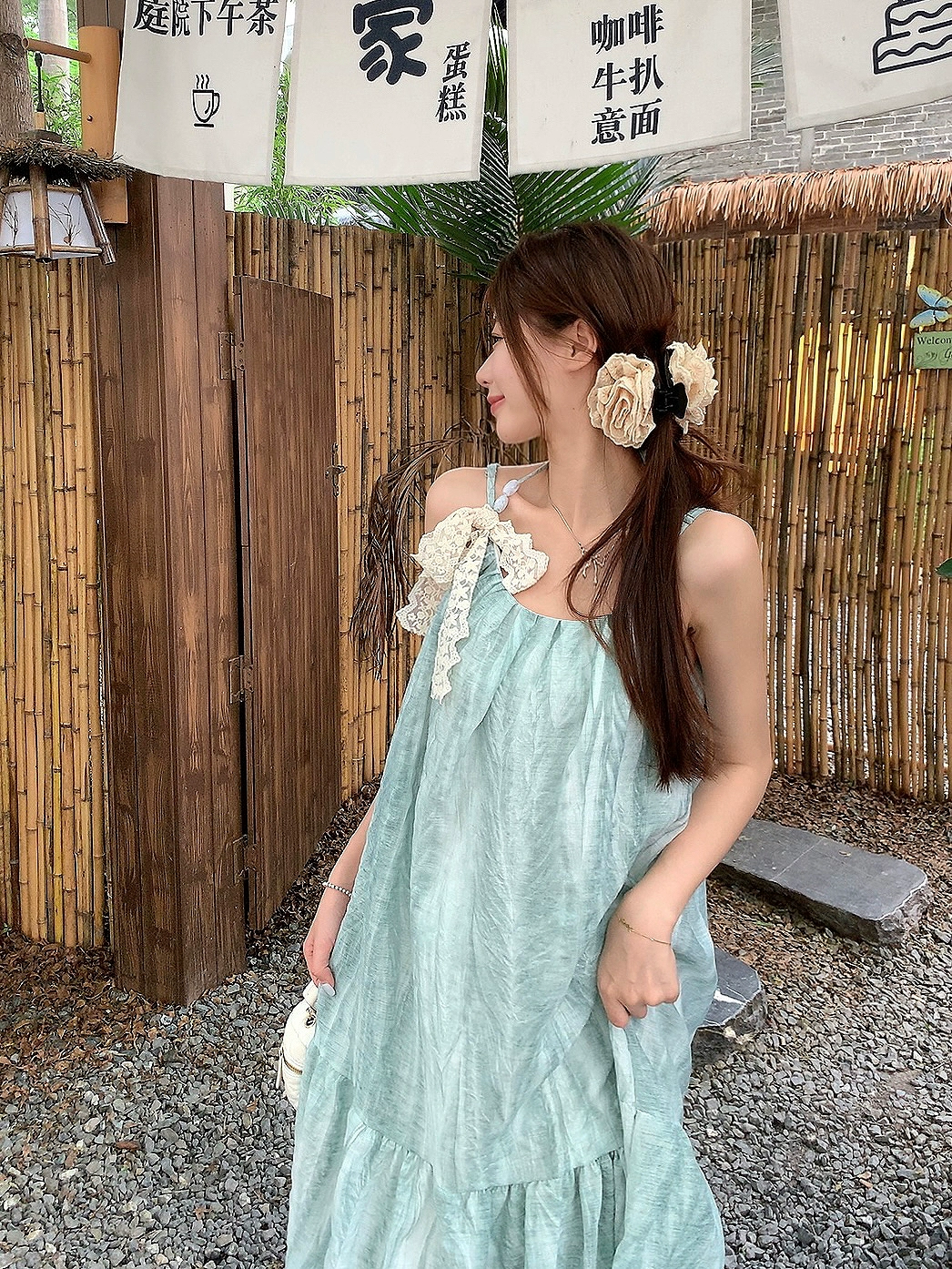 Mambo green dress summer fashion halter neck strap