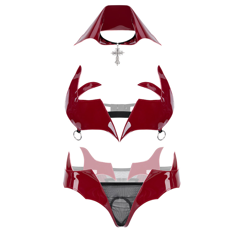 | nameOriginal | Man Smoke Sexy Underwear Sexy Strapless Hollow Devil Witch Three Point Patent Leather Uniform Set 8954 |