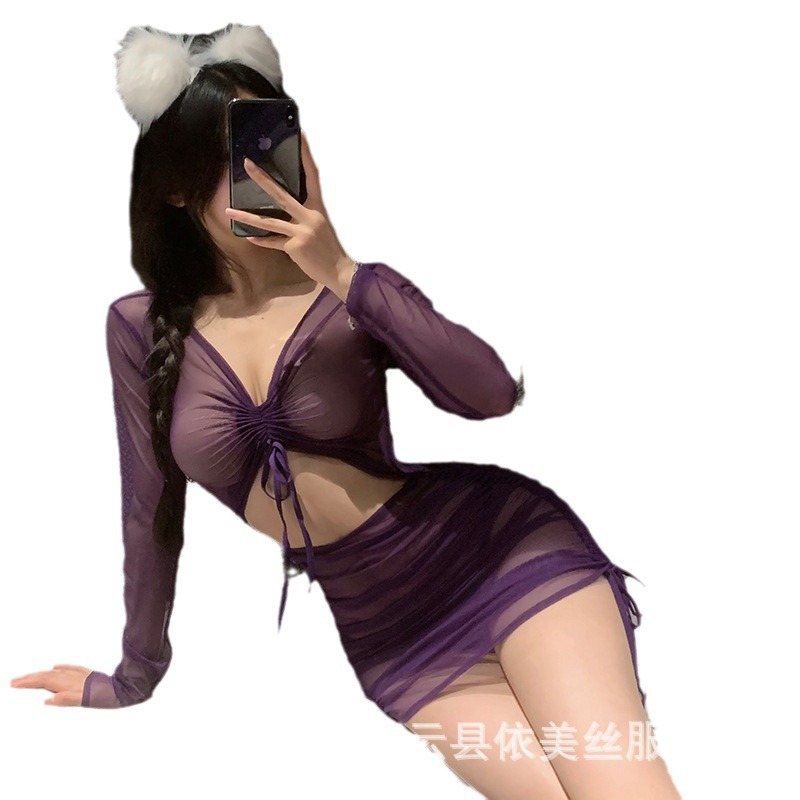 | nameOriginal | Mandesire sexy lingerie women's see-through long-sleeved sheath dress passion hot sexy uniform temptation pajamas suit |