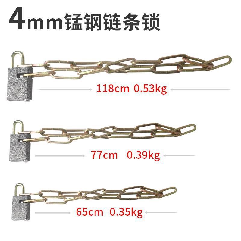 | nameOriginal | Manganese Steel Chain Lock Iron Chain Lock Bicycle Chain Lock Iron Door Lock Warehouse Door Lock Electric Car Motorcycle Chain Lock |