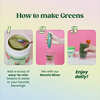 Bloom Nutrition Greens & Superfoods Powder is naturally delicious with a refreshing mango flavor. It is also dairy-free, gluten-free, keto-friendly, low-carb, non-GMO, soy-free, sugar-free, and vegan.