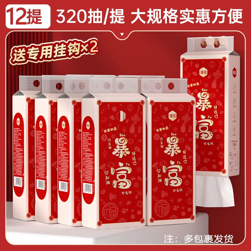 | nameOriginal | Manhua New Year's style hanging paper napkins full box home napkins 1280 large pack toilet paper logs four-layer paper towels |