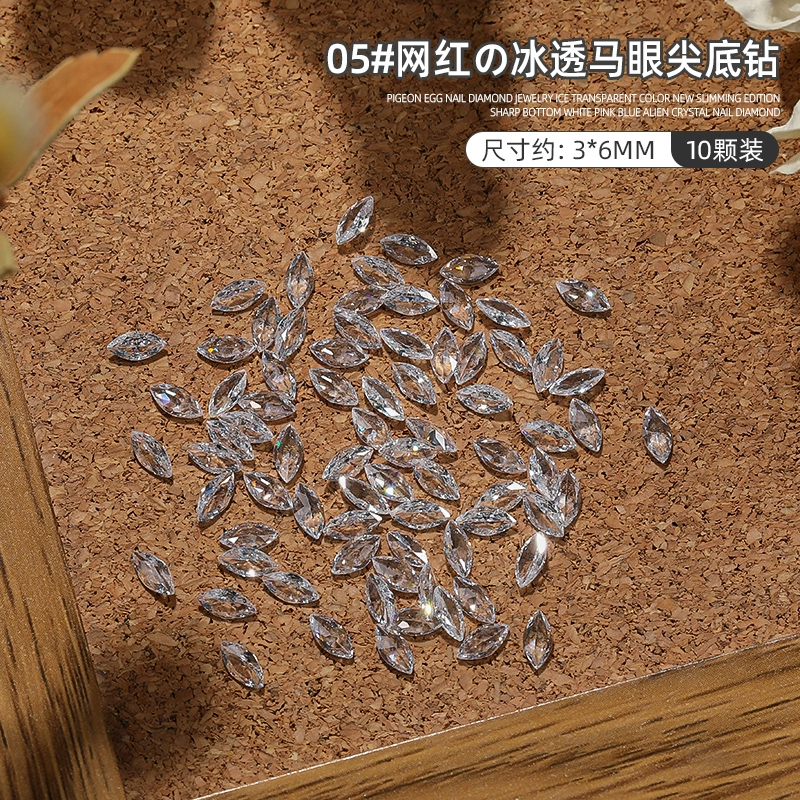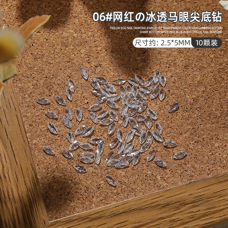 | nameOriginal | Manicure Butterfly Transparent Crystal Jewelry Wearable Nail 2024 New Temperament Decoration Ice-Through Horse Eyes Water Drop Mix |