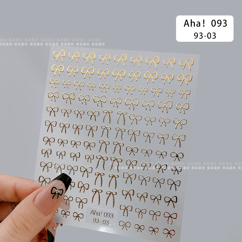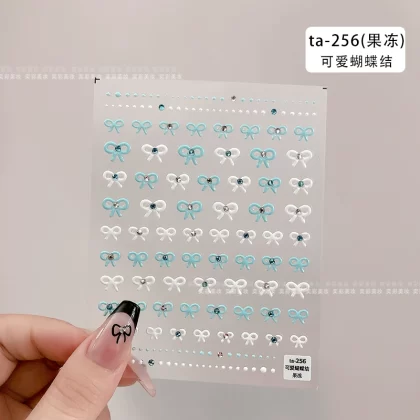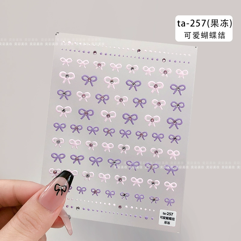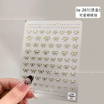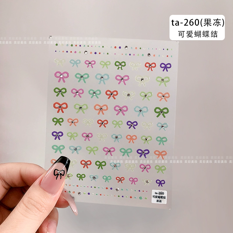 Manicure jennie's same bow inlaid with rhinestone sticker ins white black gold silver red girly heart simple nail sticker