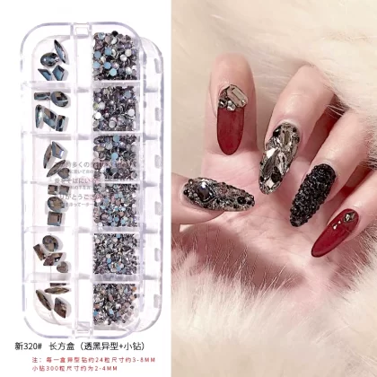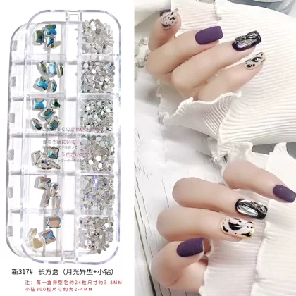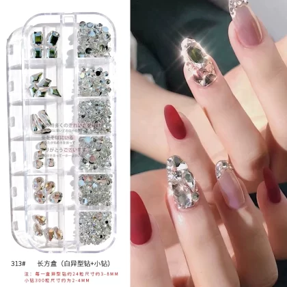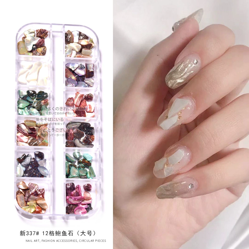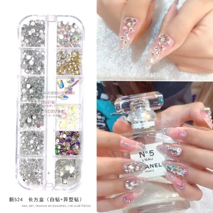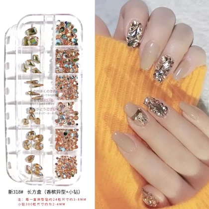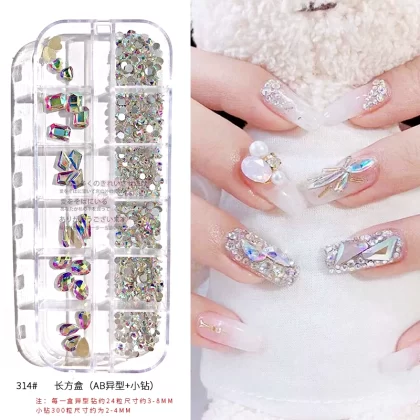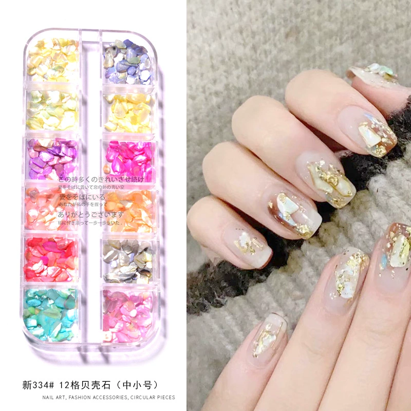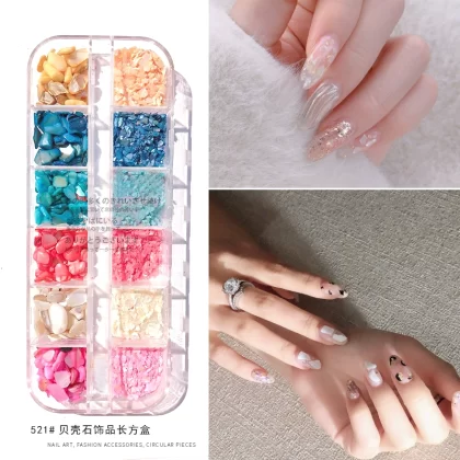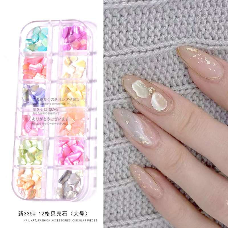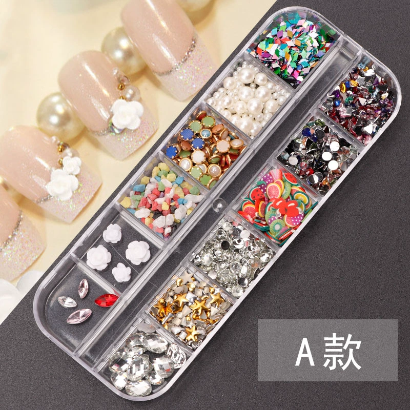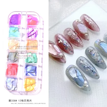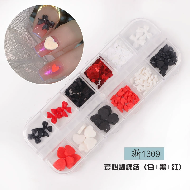 | nameOriginal | Manicure nail box decorations semi-circle pearl steel beads shell pieces gold foil small white flowers sequins love bow |
