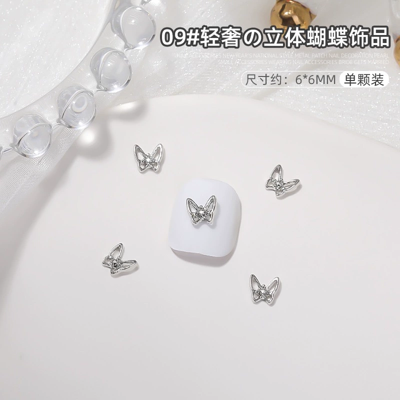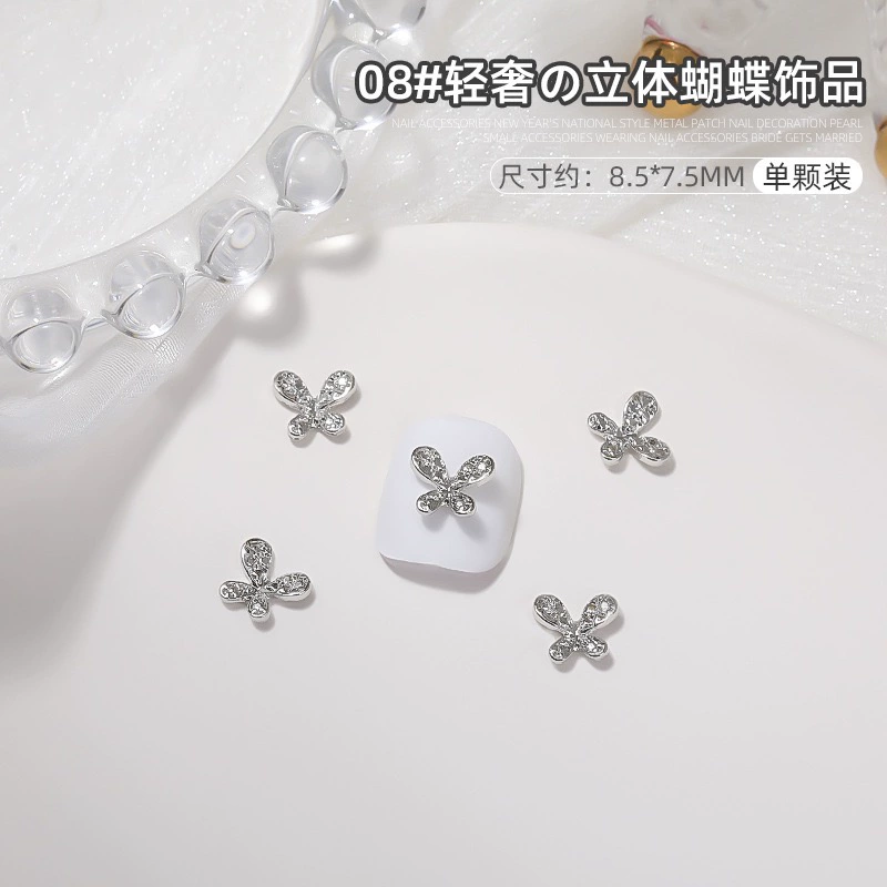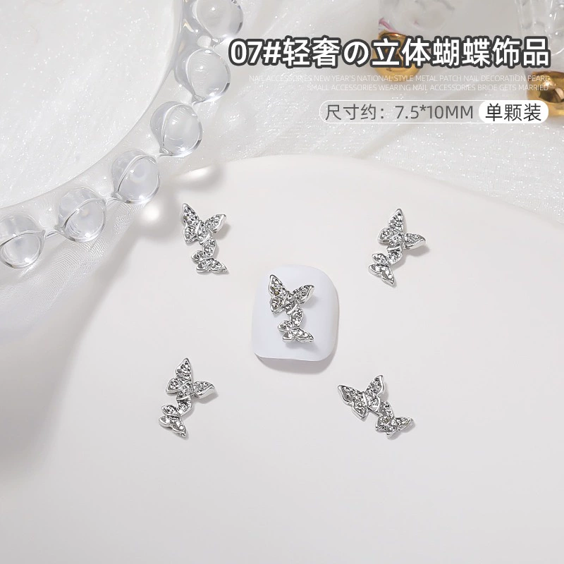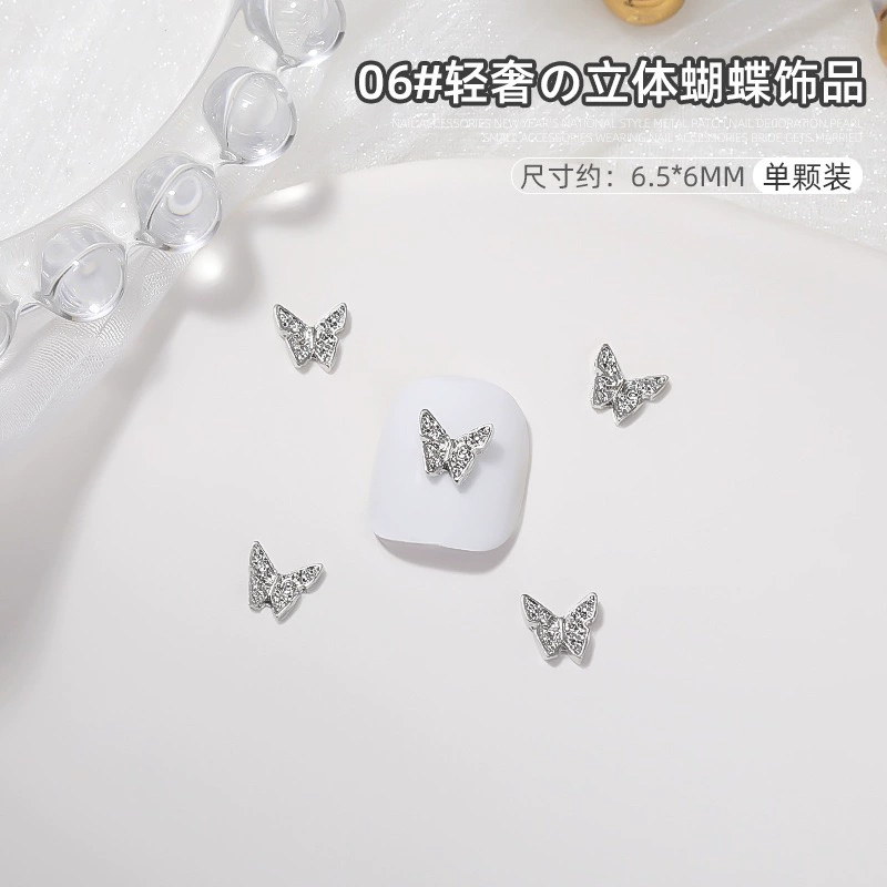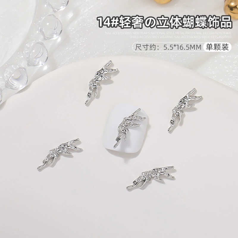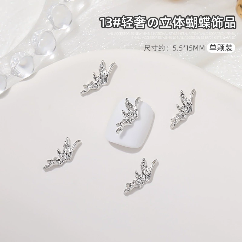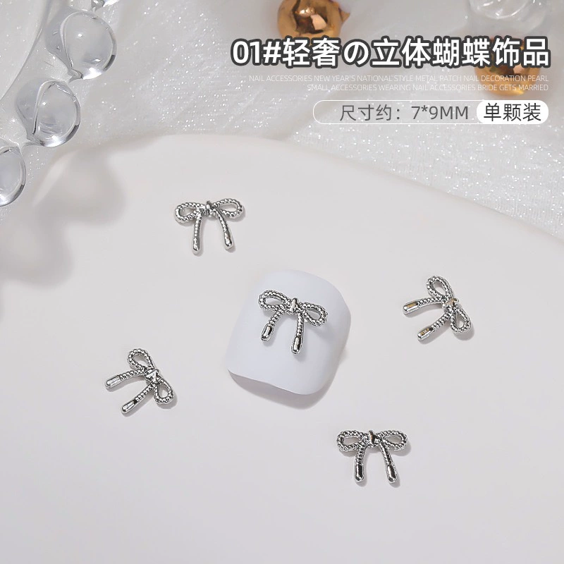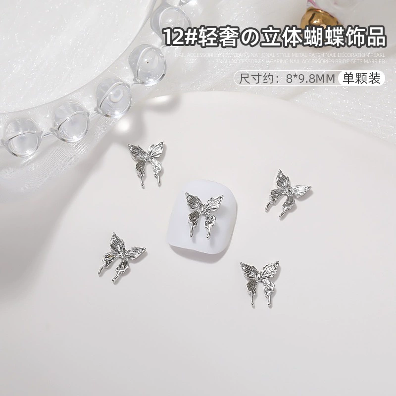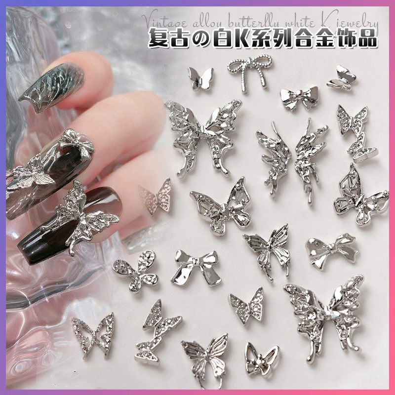 | nameOriginal | Manicure silver alloy jewelry light luxury three-dimensional bow metal large butterfly wings nail diamond accessories |