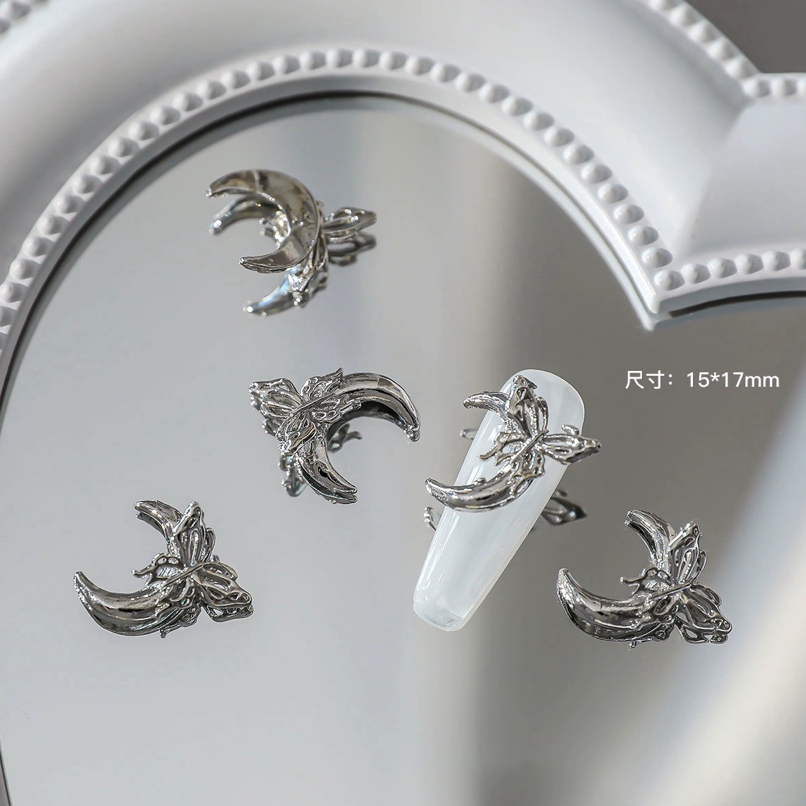 | nameOriginal | Manicure Silver Small Crown Moon Butterfly Super Flash Silver Alloy Square Diamond Internet Celebrity Star Bow Nail Accessories Diamond |