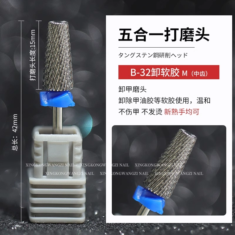 Manicure tungsten steel grinding head nail pre-treatment removal nail engraving and dead skin removal five-in-one grinder special tool
