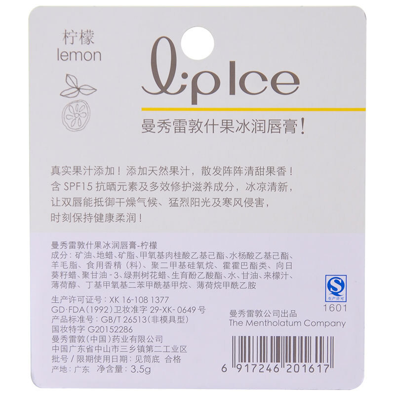Mansureidon Runshiguo Ice Lip Balm Lemon 3.5g Sunscreen spf15 Mint Lemon Strawberry Lip Balm