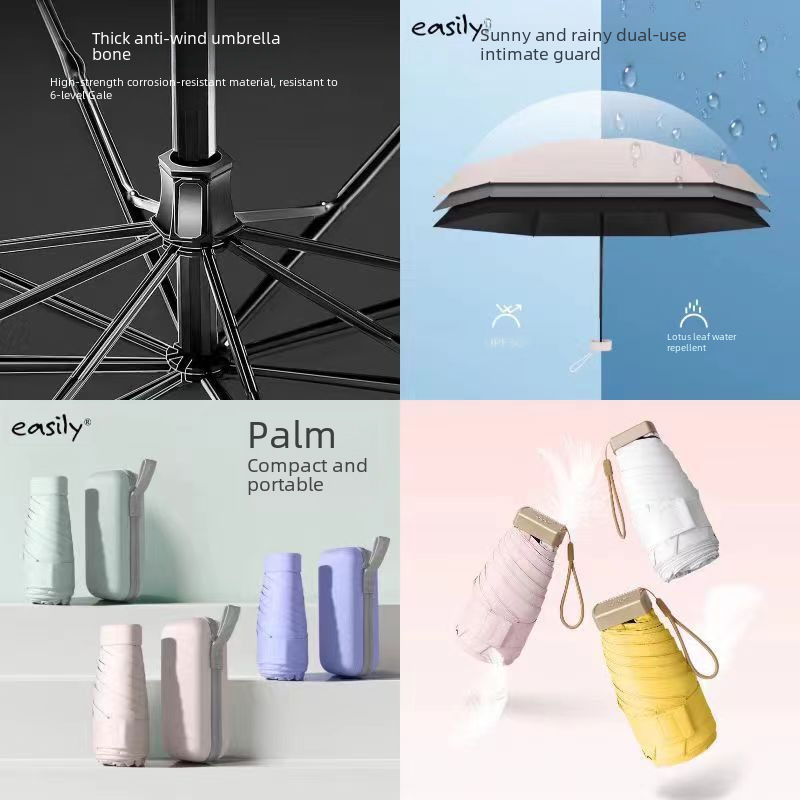 | nameOriginal | Manual Pocket Flat Mini Small Cute Solid Color Black Rubber Sunscreen 60% Fold UV Protection Portable Dual-Use Umbrella |