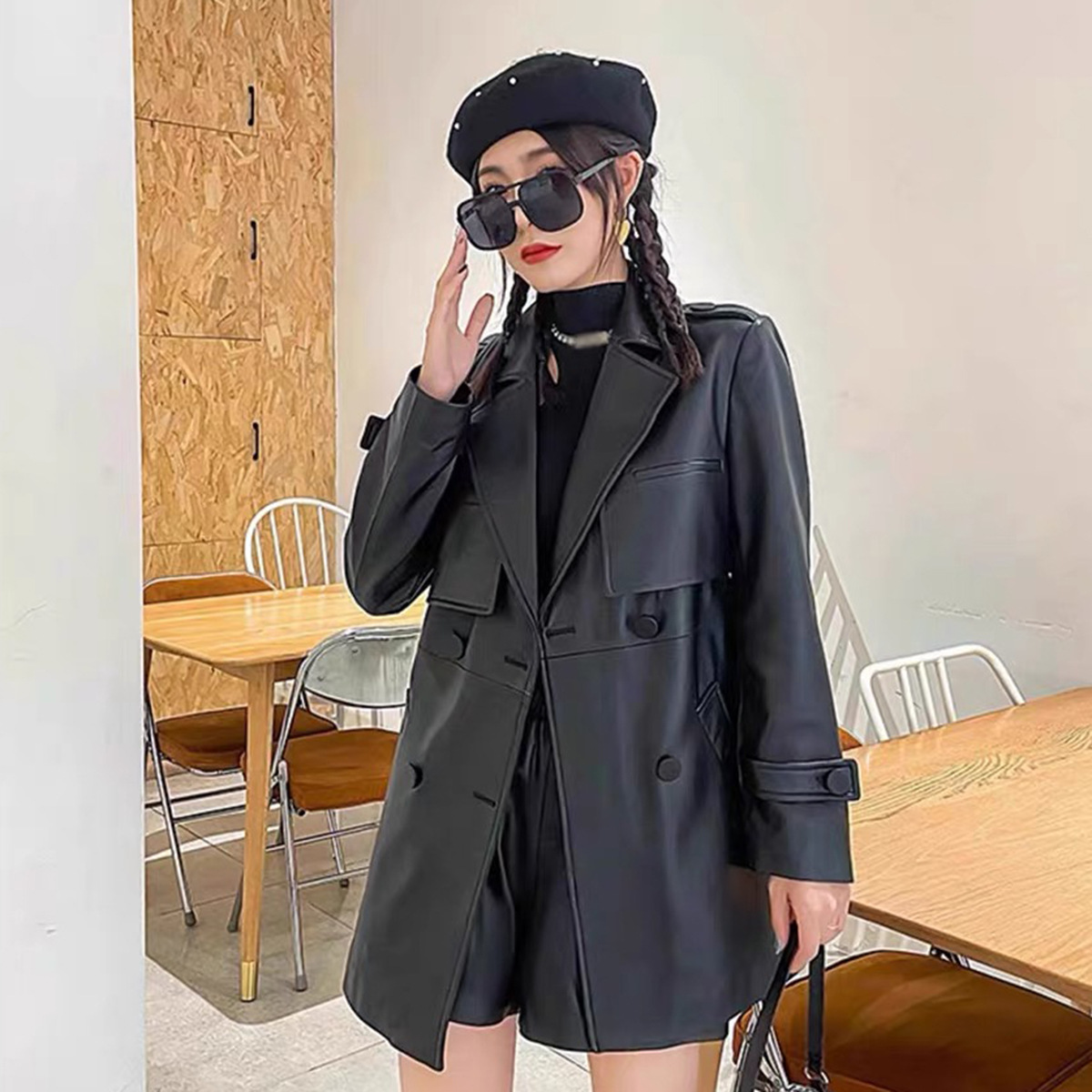 | nameOriginal | Manufacturer in stock 2024 Haining sheepskin leather coat spring new casual fashion mid-length leather trench coat for women |